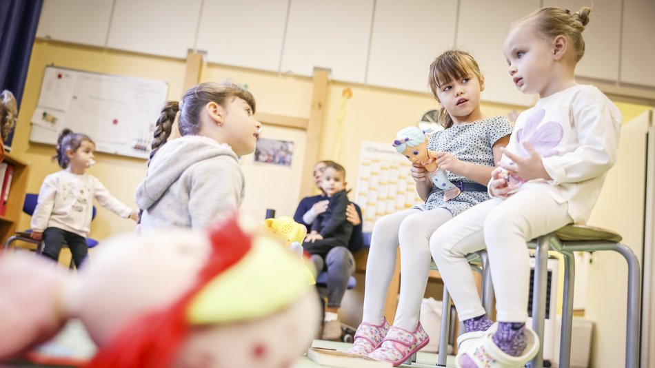 Sprache ist der Schlüssel zur Welt: Unsere Kinder brauchen sie, um sich zu verständigen, zu spielen und zu lernen. Wissenschaftliche Studien zeigen, dass Kinder von sprachlicher Bildung besonders profitieren, wenn sie früh beginnt. Unsere Sprach-Kita ist der ideale Ort, um die Sprachentwicklung Ihres Kindes spielerisch anzuregen. Alle Sprach-Kitas legen besonderen Wert auf sprachliche Bildung im Kita-Alltag. In einer Sprach-Kita arbeitet eine zusätzliche Fachkraft für sprachliche Bildung. Sie wird im Rahmen des Bundesprogramms „Sprach-Kitas“ fachlich begleitet.