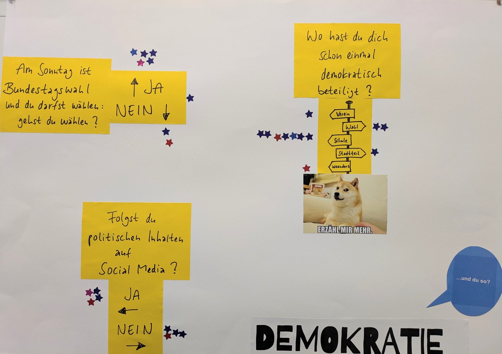 | - Plakatausstellung „Demokratie sichtbar gemacht“ mit Meinungen, Gedanken und Wünschen von Jugendlichen | ||